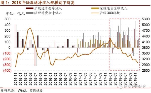 回顾2018年,外资大规模流入A股,陆股通全年净流入2942.18亿元,创沪港通开通以来的最大值。全年除2月和10月净流出外,其他各月均为净流入,有5个月的净流入规模均超过350亿元,其中5月净流入规模最高,达508.5亿元,是2014年以来陆股通单月净流入规模的最大值。