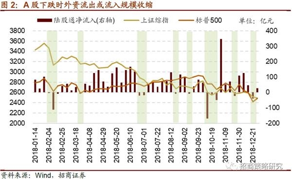 从历史数据来看,A股走势对外资流向具有直接影响,并且隔夜美股市场的大幅调整容易引起次日外资流出。2018年A股持续下调,全年惨淡收官,但受益于A股纳入MSCI,外资逆市加仓,全年累计净流入2942.18亿元,成为A股市场主要增量资金。