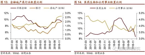 从2018全年各大类行业持股市值的占比变化来看,公用事业占比基本与年初持平,全年占比提升的大类行业包括金融地产、资源品和中游制造业,全年占比下降的大类行业包括消费服务、TMT和医疗保健行业。