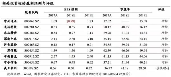 推荐个股:光迅科技、中兴通讯、东山精密、深南电路、沪电股份。