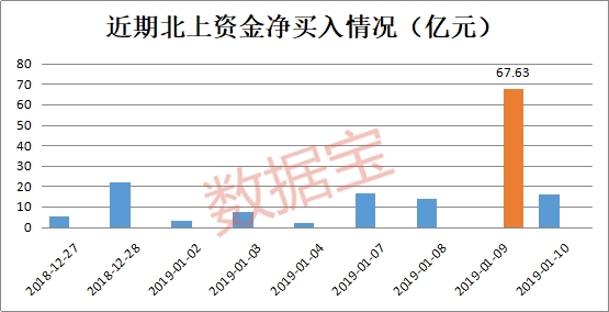 自去年圣诞节后,北上资金一直处于加仓状态,连续9个交易日净买入,期间合计净买156亿元。1月9日,北上资金净买入近68亿元,创近一个月净买入金额新高。
