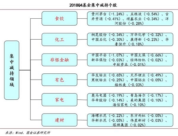 五、减持方面:公募Q4主要减持了“食饮、化工、非银、有色、家电”等,其中“有色、家电”连续二个季度减持