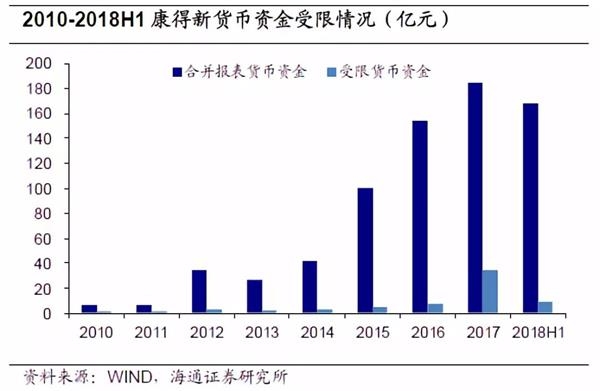 疑点一:披露的数据中并未显示货币资金存在大额受限的情况。纵观公司历年披露的财务报表,受限资金的主要用途为向银行申请银行承兑汇票、保函、信用证的保证金存款,并于“其他货币资金”科目中统计。2017年和2018年H1受限金额中还包含部分持有到期的定期存款。不过受限资金在货币资金总额中只占有很小的比例,2018年H1披露的货币资金为167.81亿元,受限资金仅8.79亿元。从账面上看,公司在使用货币资金方面的阻碍很小。