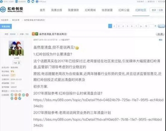 3月23日,红岭创投董事长周世平突然宣布清盘计划,并称在征求监管层意见后,红岭创投已正式提出清盘时间表及初步方案。此外,周世平在红岭创投的社区帖子中也透露了清盘原因——大标不符合备案规定,净值标在平台资产占比过大等。