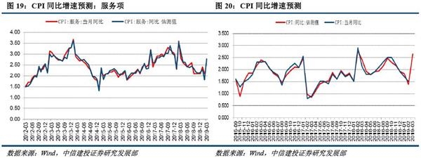 预计CPI同比回升至2.6%左右。猪肉价格在3月持续上涨,以22省猪肉价格为例,截至22日均值21.14元/公斤,较2月的19.16元/公斤上涨幅度超过10%。根据农业部猪肉批发价格指数并综合考虑春节错位等因素,估测CPI猪肉价格同比增速大幅上升至7.1%左右,较2月回升近12.2个百分点,对CPI同比增速拉动率提升0.3-0.4个百分点。鲜菜价格方面,基于农业部批发价格指数预测结果显示,3月鲜菜价格均值同比增速16.1%左右,较上月大幅提升13个百分点左右。其他食品项中,预计鲜果与蛋类价格同比增速有所回落,油脂、粮食、奶制品、牛肉与羊肉价格同比增速继续回升。综合考虑其他食品项,预计食品价格同比增速4.3%左右,较上月回落明显。非食品项目中,发改委3月1日、29日分别上调汽油零售价270元/吨、80元/吨,油价同比增速转正至2.7%左右。需要关注的是服务价格。我们预测服务项增速比2月份有所反弹,似乎跟节后服务价格环比下跌的通行认识不同。原因在于,服务价格具有明显的季节性,从历史经验看,服务价格是在春节放假期间环比涨幅很大,例如假期旅游增多导致的酒店、交通运输等价格上涨,务工人员返乡导致的家庭服务价格上涨。在春节假期后,服务价格开始环比下跌。去年春节假期较为靠后,所以假期后的服务价格环比下跌有一部分是落在3月份,导致2月服务价格环比很高、3月环比很低。今年春节提前,假期后的服务价格环比下跌在2月份就已充分反映,所以2、3月份的环比增速相对平滑,2月环比增速低于去年,但3月环比增速高于去年。由于基数的降低,今年3月服务价格同比增速较2月有所扩大,约在2.8%左右。综合考虑,预计3月CPI同比增速大幅回升,大致在2.6%左右。