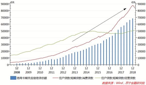 第二,超前消费和借债消费的文化日渐盛行。消费和财富观念的转变,使得超前消费被普通家庭广为接受,借钱渠道增多,又使得超前消费变得唾手可得。然而,超前消费是在透支未来的钱,必然会使当期负债增加,杠杆率上升。央行统计的数据显示,2018年末,银行信用卡待偿余额为6.85万亿元,同比增长23.2%,而2008年末仅为1582亿元,十年内增长了42.3倍。