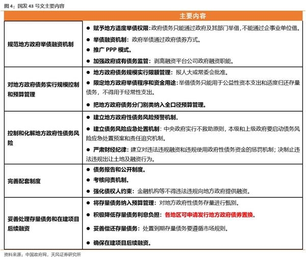 目前上述中央对隐性债务处置要求的文件尚未公开全文,但从此前的政策和实际执行中我们可以大致看出隐性债务的处置思路。回溯到2014年9月,国发43号文《国务院关于加强地方政府性债务管理的意见》可以视作本轮全面整治地方政府债务的起始和顶层文件,此后中央、国务院以及部委、地方出台的相关文件也基本遵循了“堵疏结合”的治理原则。