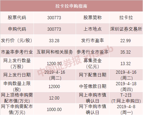 本周有望迎来4只新股申购,分别是今天(4月16日)创业板的拉卡拉(申购代码:300773),明天(4月17日)沪市主板的中创物流(申购代码:732967)和创业板的运达股份(申购代码:300772),以及周五(4月19日)沪市主板的泉峰汽车(申购代码:732982)。