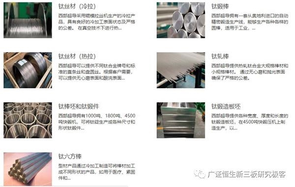 公司主要产品有三类,第一类是高端钛合金材料,包括棒材、丝材和锻坯等;第二类是超导产品,包括铌钛锭棒、铌钛超导线材、铌三锡超导线材和超导磁体等;第三类是高性能高温合金材料,包括变形高温合金、铸造和粉末高温合金母合金等。