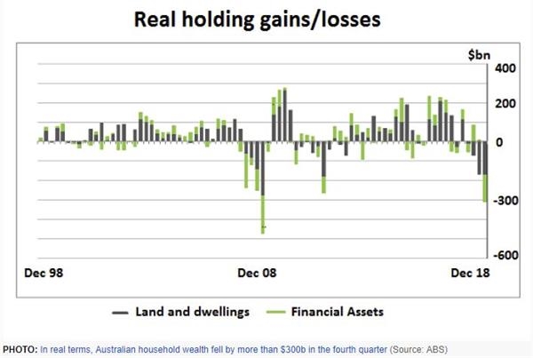 在去年四季度,澳大利亚房屋价格指数加速下跌了2.4%,同期,澳股指下跌了10%。考虑到这两个因素,出现这种财富缩水也并不奇怪。
