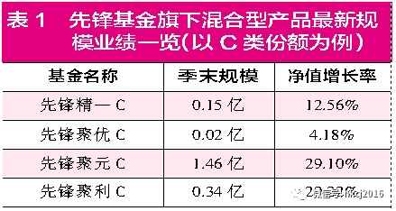 如规模最小的、业绩乏善可陈的先锋聚优,一季度末,该基金A、C两类份额合计仅为0.04亿元。截至4月25日收盘,先锋聚优A今年以来的净值增长率仅为4.35%,在同类基金中排在了后二分之一的位置,先锋聚优C的净值增长率则为4.18%。