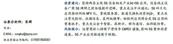 太平洋证券在同日发布的研报中,则坚持5G设备相关产业链+5G应用两条投资逻辑主线。