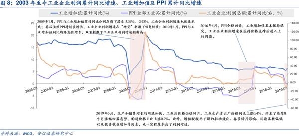 2019Q1全A(非金融石油石化)业绩超预期,核心推动主要来自于主板公司。根据18年报和2019一季报,2019Q1中小创负增长(分别为-5.17%和-14.78%),而主板的归母净利润增速为11.35%,相较于2018Q4单季度的-23.87%明显改善;进一步剔除两油和金融,2019Q1主板(非金融石油石化)归母净利润增速为6.44%,相较于2018Q4(剔除两油金融)的-36.54%同样大幅提升。这点也可以在最新公布的工业企业利润中得到验证和解释。2019Q1同比下降3.3%,降幅环比收窄10.7pct。其中,3月份同比增长13.9%。根据统计局给出的解读,主要是由于工业品价格企稳回升与石油加工、钢铁、化工等重点行业利润明显回暖推动。
