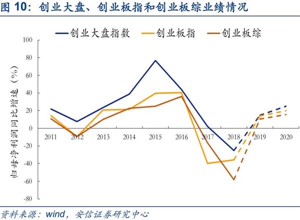 同时,我们认为也需要强调2019Q1创业板业绩增长“虽负犹荣”。结合当前来看,创业板配置水平偏低,在可预见未来,创业板盈利的不断改善将成为其投资价值的重要支撑。19Q1创业板单季度归母净利润同比增速为-14.79%,较2018Q4单季度增速-529.13%大幅提升。进一步剔除温氏、乐视和宁德后,创业板19Q1业绩同比降幅缩窄至-11.40%,与我们此前在外发专题《为何我们认为创业板Q1预告业绩增长“虽负犹荣”?》中测算的数值(-13.68%)较为接近。剔除温氏股份和宁德时代(乐视当前尚未披露)后回升至-11.40%。在此,我们再次强调,在可预见未来,创业板盈利的不断改善将成为其投资价值的重要支撑。在此前外发的专题报告《为何我们认为创业板Q1预告业绩增长“虽负犹荣”?》中,对于2019年创业板,我们倾向于认为其商誉减值风险随着2017、2018年持续两年的消化,今年有望迎来好转,在Q1预告业绩增速环比回升之后2019年业绩将大概率呈现逐季回升的趋势。和主板的对比之下,我们认为创业板在2019年的业绩相对优势将会越来越明显,保守预计全年业绩同比增长在10%左右,主板(非金融)则在-5%左右。而目前,国内基金在三大板块的仓位分布中,仅创业板配置水平低于历史平均。2019Q 1创业板净减仓0.14pct至14.36%,低于历史平均水平的15.27%。