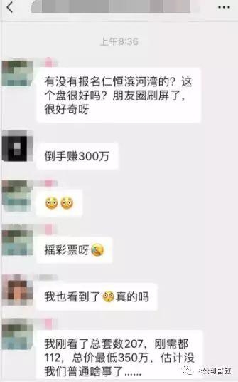 有网友表示,尽管中签率堪比网上打新股,但在两百多万新旧房价差的诱惑下,也被人忽悠去参与摇号。有网络传闻,报名仁恒滨河湾新房摇号的人数规模或将突破万人,但具体报名人数仍需等到最终复审结果才能确定。