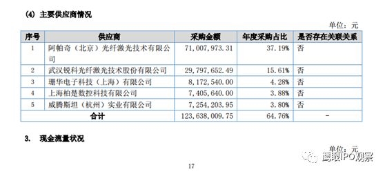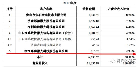 除了政府补助不一致外,招股说明书披露的销售数据也与公司客户提供的采购数据存在差异。招股说明书,嘉泰激光是公司2017年的主要客户,当年交易额615.76万元。嘉泰激光是新三板上市公司,该公司2017年年报反映,当年向柏楚数控采购740万元,相差125万,差异率达20%。对此,柏楚电子解释,差异原因系双方收入确认政策不一致。