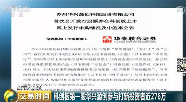 科创板第一股华兴源创中签率昨晚揭晓,中签率接近0.06%!近276万投资者参与打新。