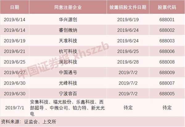 7月1日晚,证监会发布信息,一次同意7家企业科创板首次公开发行股票注册。回顾此前证监会发布的6次同意科创板IPO注册信息,一次最多同意2家,明显提速。