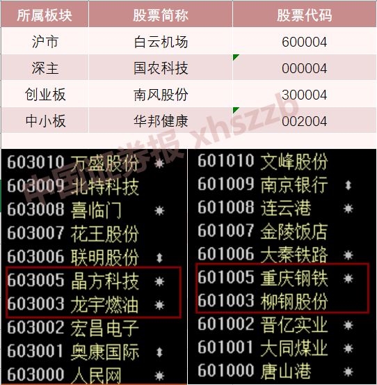 值得关注的是,目前,共有8家科创板企业拿到了各自的股票代码,尽管股票代码最后一个数字已经从“1”增到“9”,但始终不见“004”号选手。实际上,沪市的601系列和602系列股票代码均没有“004”,但600系列有“004”,同时,创业板、中小板和深主板各自股票代码也都有“004”。