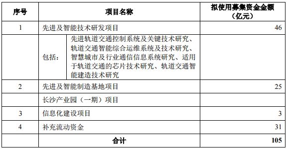 招股意向书显示,本次中国通号IPO拟募集资金总额合计105亿元,计划用于先进及智能技术研发项目、先进及智能制造基地项目、信息化建设项目以及补充流动资金。