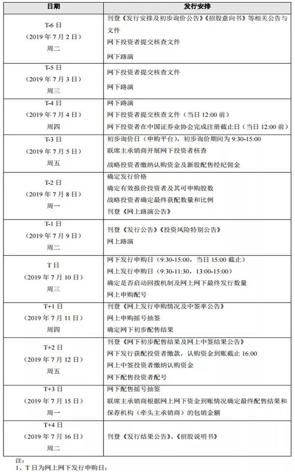 本次发行的初步询价期间为7月5日的9:30-15:00。网下申购时间为7月10日的9:30-15:00,网上申购时间为7月10日的9:30-11:30、13:00-15:00。