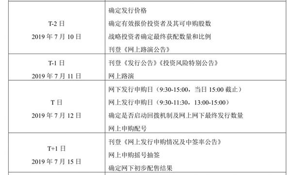 3、发行时间表: