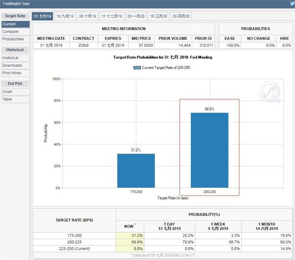 目前,美联储政策利率目标区间维持在2.25%-2.5%。芝加哥商品交易所的“美联储观察工具”最新预测显示,市场认为美联储7月降息25个基点的概率达七成。