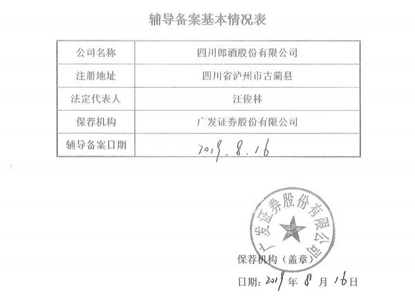 近日,中国证监会四川监管局(以下简称四川证监局)官网公布了《郎酒股份辅导备案基本情况表》。情况表显示,拟上市主体为郎酒股份,辅导备案日期为2019年8月16日,保荐机构为广发证券。也就是说,郎酒股份已经进入IPO辅导阶段。