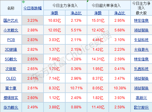 从盘面上来看,行业与概念板块涨跌不一,局部赚钱效应突出。在行业板块之中,通讯行业船舶制造水泥建材等板块涨幅居前;而在概念板块之中,国产芯片、OLED、5G概念等板块涨幅靠前。