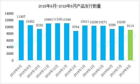 2018年8月-2019年8月产品发行数量数据来源:融360大数据研究院