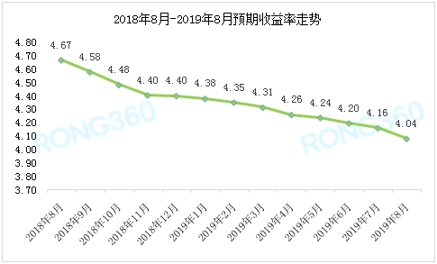 2018年8月-2019年8月银行理财产品平均预期收益率走势