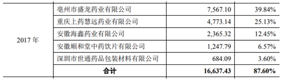 根据招股书披露,“亳州市盛龙药业有限公司”始终都是三力制药的第一大供应商,2017年采购占比最高时一度达39.84%,2019年上半年的采购占比仍然高达28.88%。