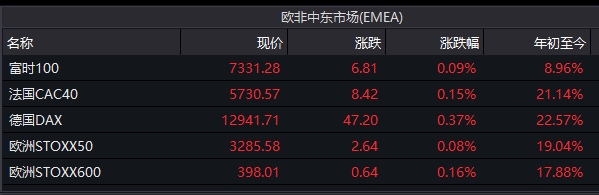 欧洲股市亦多数上涨。