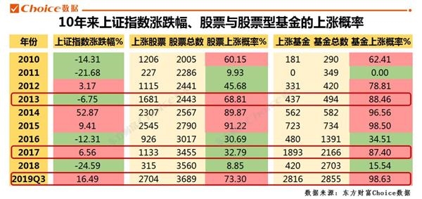 2013年假熊市,68.81%的股票上涨,88.46%的股票基金上涨;