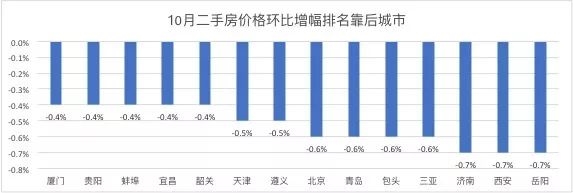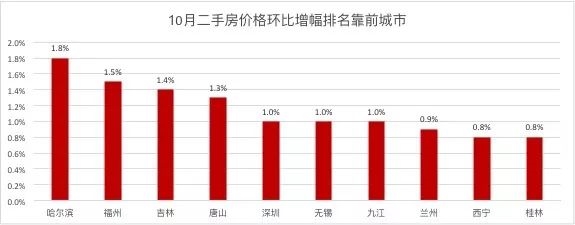 10月环比涨幅下跌的城市有17个,9月有12个;