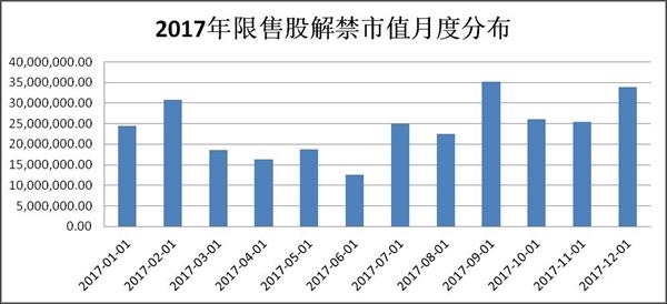 先看看整个2017年解禁市值的月度分布,一眼看去,很明显,3月的解禁规模是偏小的。