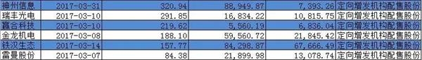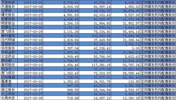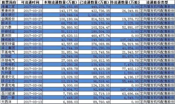 3月份定向增发解禁股票