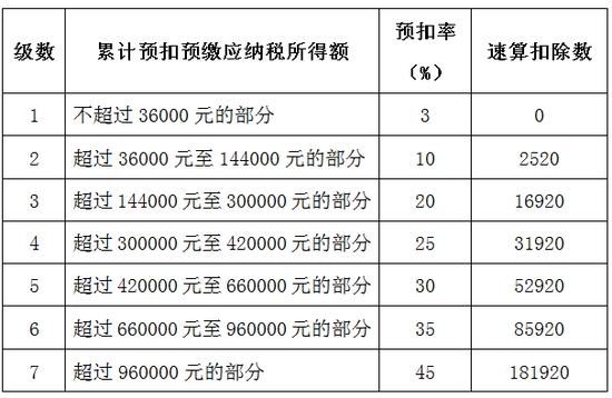 个人所得税预扣率表一