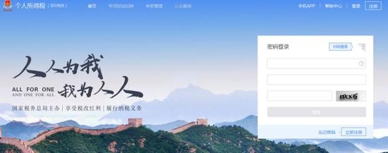 使用注册过的身份证件号码及密码,或“个人所得税”APP扫码登录。