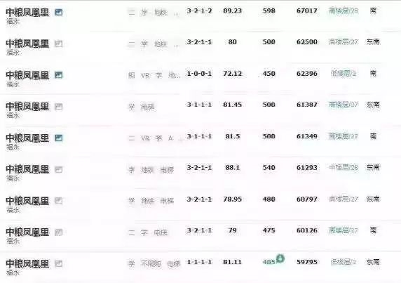 此前中粮凤凰里二手房挂牌价(图片来源:中国证券报)
