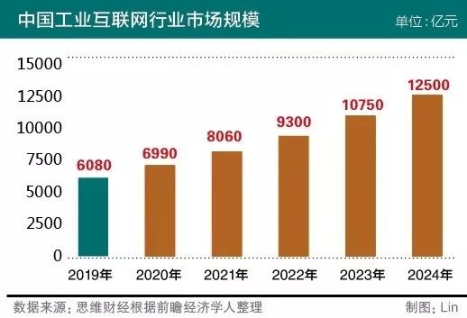 据统计,2018年,我国工业互联网行业市场规模达到5313.04亿元,较上年同比增长13.71%。前瞻产业研究院预测2019年全年市场规模可达6,080亿元,并预计到2023年,我国工业互联网行业市场规模将会突破万亿,2024年将会达到12500亿的水平,并表示我国工业互联网产业前景十分乐观。