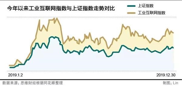 从2019年开年第一个交易日到2019年12月30日收盘,工业互联网板块指数(885783)涨幅为37%,表现优于上证指数涨幅21.9%,全年共计领先上证指数15.1%。