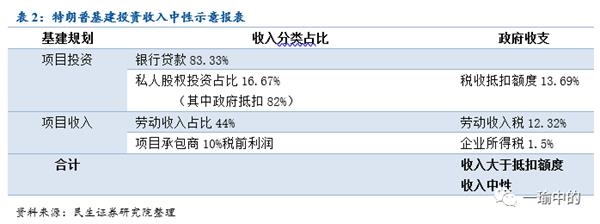 总计通过基建项目产生的税收收入将占项目成本的13.82%,略高于13.69%,基本说明这项计划是收入中性的。