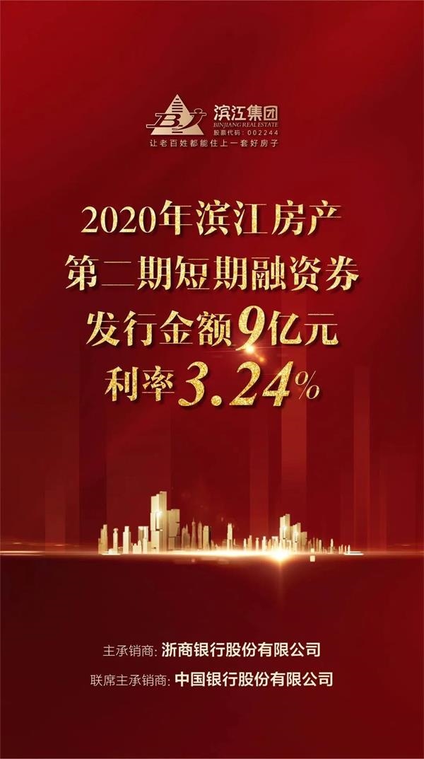 2月25日,滨江集团公布了2020年第二期短期融资券发行情况,发行金额9亿元利率仅3.24%。这一表现创下了2017年以来,AA+评级的民营企业中发行的短融、超短融(非防疫)票面最低利率。