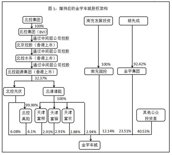 如果方案最终得以实施,北控能源集团在金宇车城的持股比例将由22.48%上升至29.37%。南充国投的持股比例则由11.46%下降至7.92%。二者作为一致行动人,持股比例由33.93%提高至37.29%,控制权得以进一步加固。