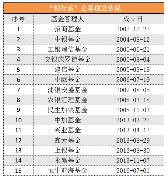 这意味着,近4年无“银行系”公募设立的局面将被打破。
