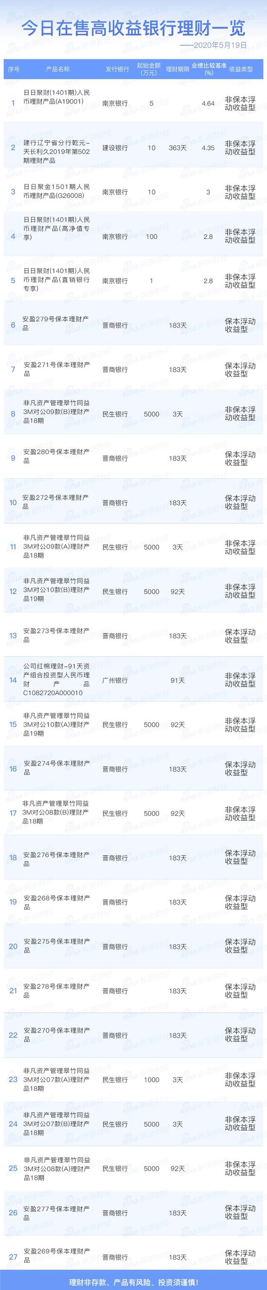 5月19日在售高收益银行理财产品一览