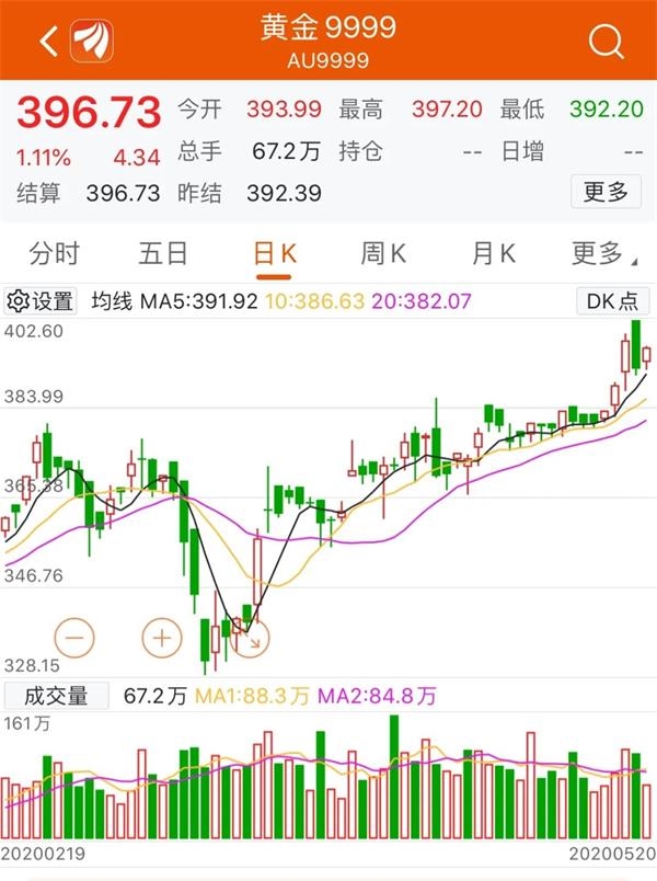 截至发稿,国际现货黄金报1749.65美元;COMEX黄金期货价格涨0.60%,报1756美元/盎司。国内方面,今日上海金AU99.99收报396.73元。