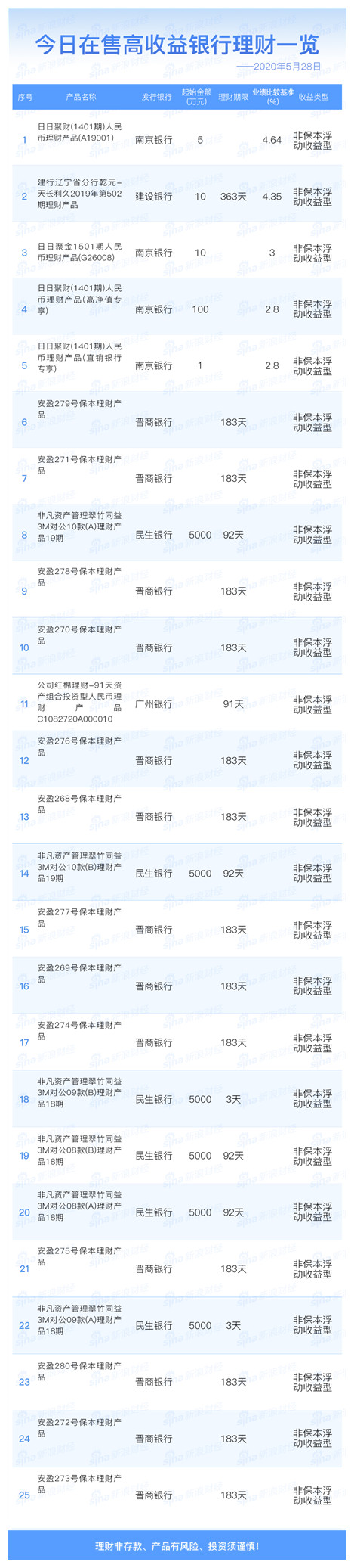 5月28日在售高收益银行理财产品一览