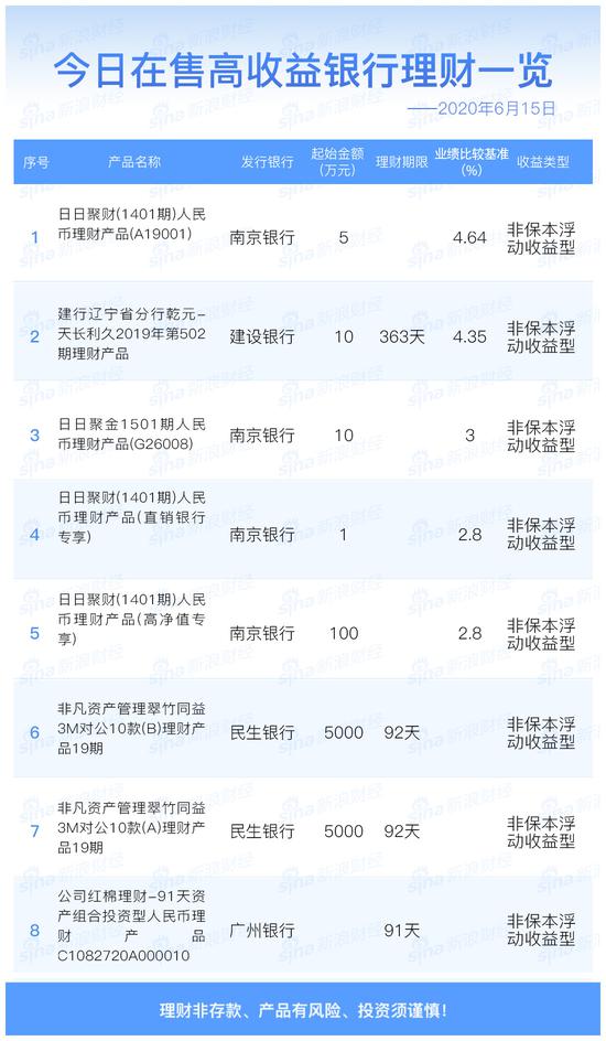 6月15日在售高收益银行理财产品一览